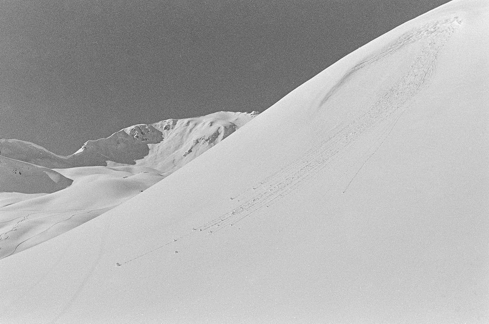 Winter in the Alps is all about snow. It brings the landscape back to its purest form, absorbing most of its features, its colours, and its pattern—even movements and sounds subside.